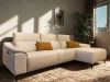 Nelle versioni Recliner Elettrico Comfort, il divano offre un’esperienza di relax personalizzato grazie al poggiatesta motorizzato a doppio movimento, al supporto lombare regolabile e al meccanismo recliner indipendente: ogni funzione può essere gestita tramite la pulsantiera laterale integrata, anche nelle configurazioni senza bracciolo. L’altezza massima con poggiatesta sollevato raggiunge i 105 cm, mentre la profondità con recliner aperto arriva a 166 cm.