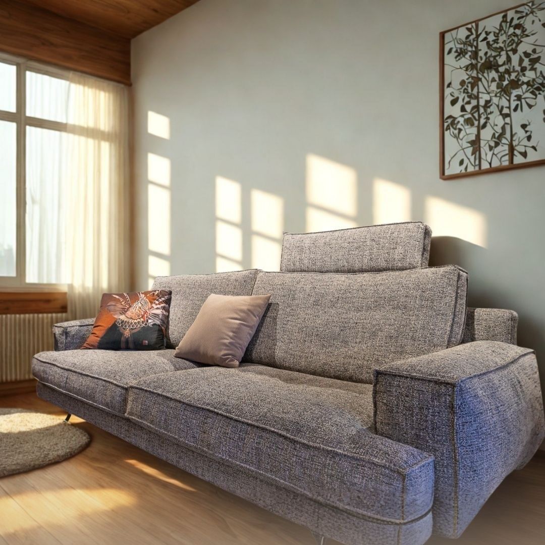 Un background lontano per un appeal senza tempo e un design contemporaneo sono la forza espressiva di questo modello. Alto da terra e contenuto nella profondità riflette un design raffinato e rigoroso. La cucitura che disegna braccioli e cuscini, rafforza il carattere dettato dall’incontro sapiente di volumi squadrati dalle diverse fogge, che offre molteplici ed innovative combinazioni.